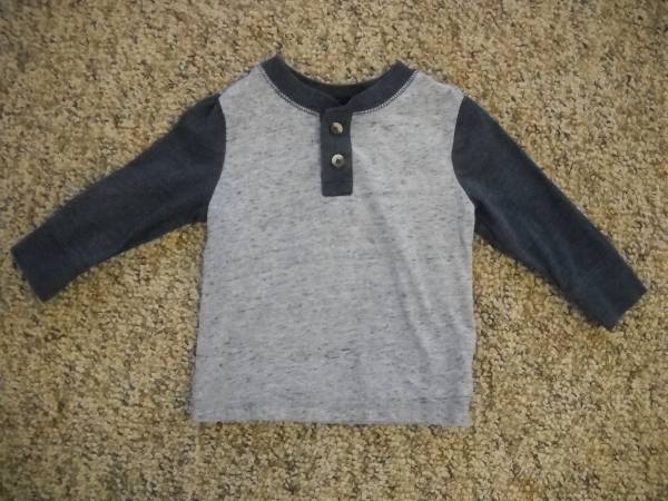 Cherokee 2 Button/Long Sleeve Shirt, Gray and Blue (Infant/12M) $3.00