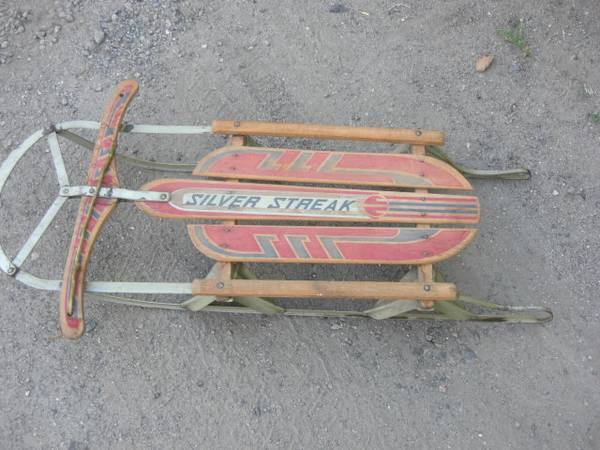 Silver Streak vintage flexible snow sled $110 Only the snow is missing to ensure a mountain of fun! Or re-purpose it as a great piece of cabin décor, year round. Graphics are good. Measures approx....