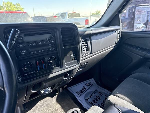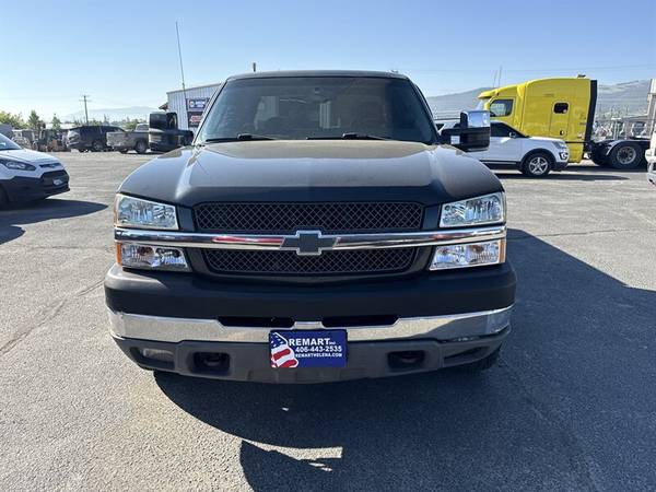 The 2003 Chevrolet Silverado 2500 4dr Extended Cab comes equipped with a powerful Duramax 6.6L Diesel Turbo V8 engine that delivers 300hp and 520ft. lbs. of torque. This truck offers a spacious interior with seating for up to six passengers, providing both comfort and functionality. The factory default features include air conditioning, power windows and door locks, a CD player, and cruise control for added convenience. The truck also features anti-lock brakes, dual front airbags, and a sturdy frame for enhanced safety on the road. Overall, the 2003 Chevrolet Silverado 2500 offers a reliable and capable option for those in need of a dependable workhorse.****SAVE BIG.**Call Remart Inc at 406-443-2535. Or stop in and drive at 1931 N. Last Chance Gulch** Helena Montana