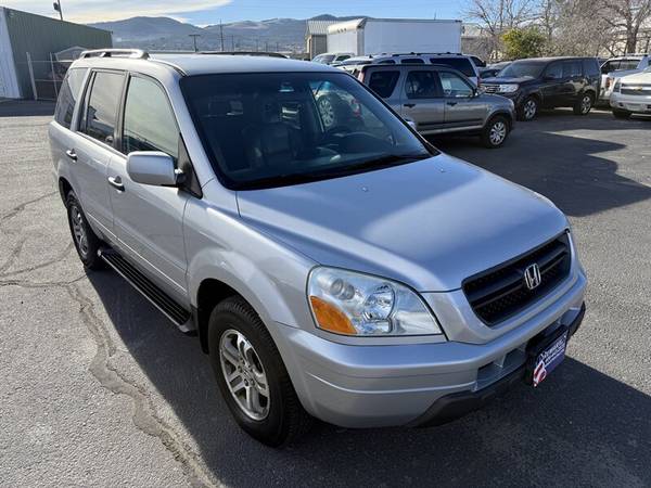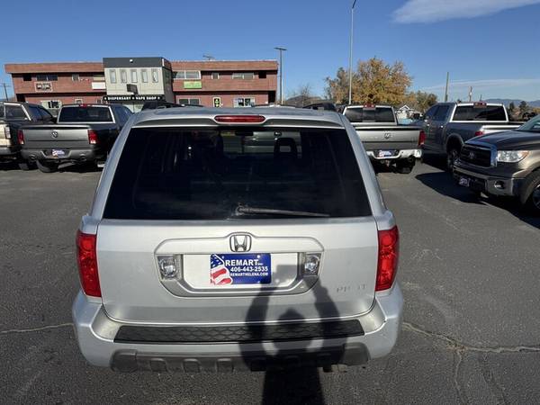 The 2004 Honda Pilot EX-L 4dr comes equipped with a reliable 3.0L NA V6 single overhead cam (SOHC) 24V engine, providing a balance of power and efficiency. As a factory default, this vehicle offers a range of features to enhance comfort and convenience. The EX-L trim level includes leather-trimmed seats, a power moonroof for added natural light, and a premium audio system for an enjoyable driving experience. With third-row seating, there is ample space for passengers or additional cargo. The vehicle also includes standard safety features such as anti-lock brakes and dual front impact airbags, prioritizing the well-being of occupants. Overall, the 2004 Honda Pilot EX-L 4dr combines practicality with comfort for a versatile driving experience. SAVE BIG.**Call Remart Inc at 406-443-2535. Or stop in and drive at 1931 N. Last Chance Gulch** Helena Montana