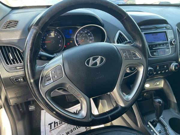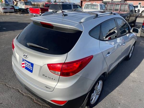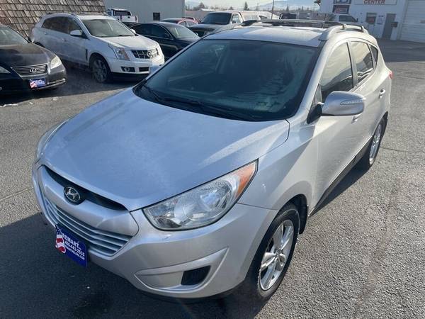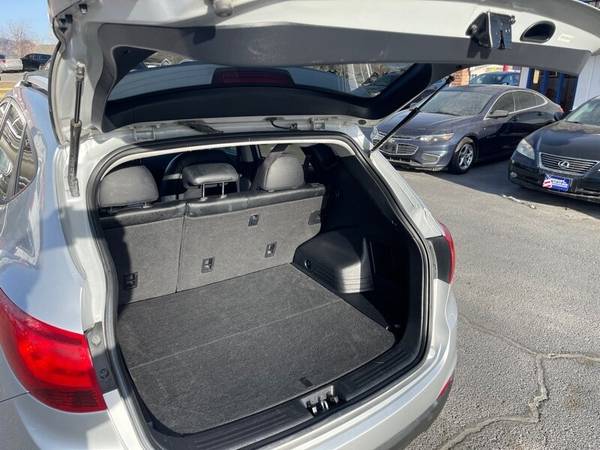This 2012 Hyundai Tucson GLS is equipped with a 2.4L I4 engine that delivers 176 horsepower and 168ft. lbs. of torque. The default features include a six-speed automatic transmission, front-wheel drive, and a MacPherson strut front suspension. The exterior is painted in a sleek green color, while the interior boasts a comfortable gray cloth seating. Other features include a six-speaker sound system, air conditioning, and power windows and locks. With an impressive fuel efficiency of 20 MPG in the city and 27 MPG on the highway, this vehicle is perfect for those who want a reliable and efficient SUV. Overall, this 2012 Hyundai Tucson GLS is in excellent condition and ready for its next adventure.