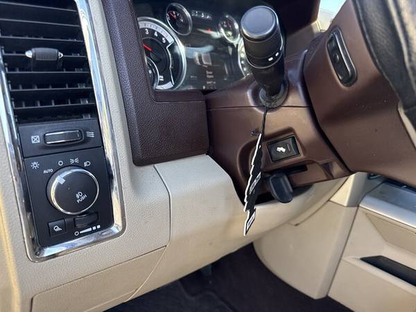 The 2015 RAM 1500 Laramie is a powerful and efficient truck that offers impressive performance with its EcoDiesel 3.0L Biodiesel Turbo V6 engine delivering 240hp and 420ft. lbs of torque. This model comes equipped with a range of factory default features that enhance both comfort and convenience.
