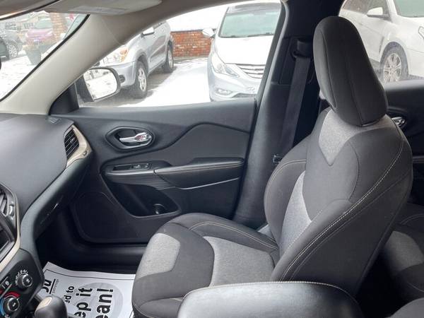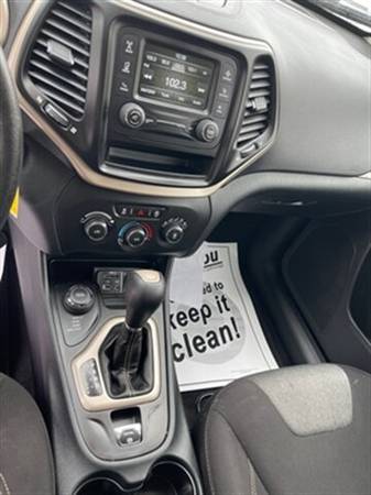 Introducing a 2016 Jeep Cherokee Sport, with a powerful 3.2L V6 271hp 239ft. lbs. engine. This vehicle is equipped with a range of factory default features including a rearview camera, 5-inch touchscreen display, Bluetooth connectivity, and a six-speaker audio system. The exterior is coated with a sleek black finish, complementing the black interior. With less than 41,000 miles, averaging less than 5,000 miles per year, this vehicle is in excellent overall condition. It offers excellent mileage and is a great choice for anyone looking for a reliable and stylish SUV.