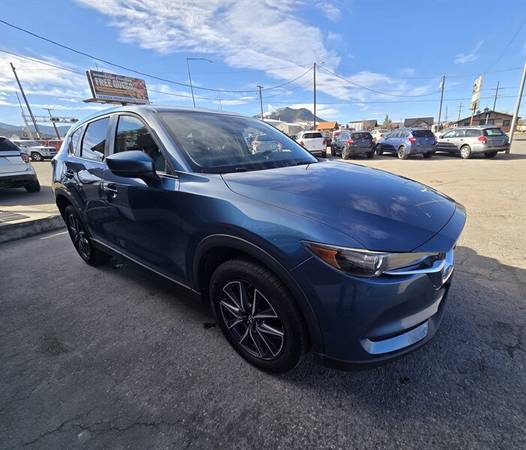 2018 Mazda CX-5 Touring AWD SUV This vehicle has a beautiful dusty blue exterior and hybrid leather/suede interior that looks and feels luxurious. The interior is also loaded with heated seats, sun roof, bose stereo, navigation and power rear hatch. SKYACTIV-G 2.5L I4 automatic with Only 94k along with luxury this SUV is loaded with safety features like blind spot monitoring, cross traffic alert, lane keep assist, smart brake support, back up camera. This vehicle has been well maintained and it shows, clean auto check on file showing no accidents, clean title and it comes with 3 keys!
