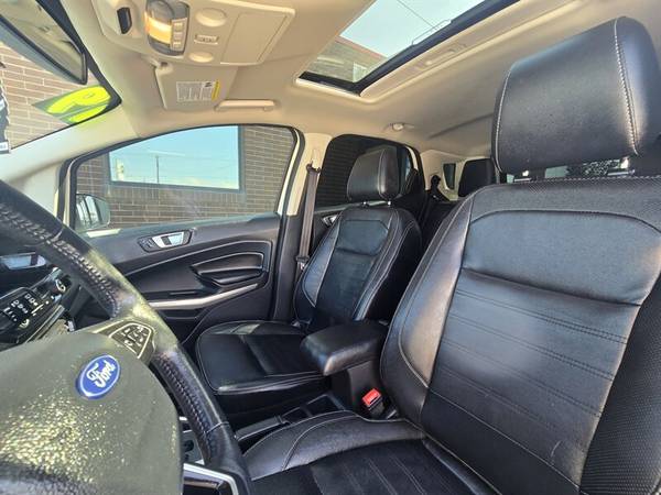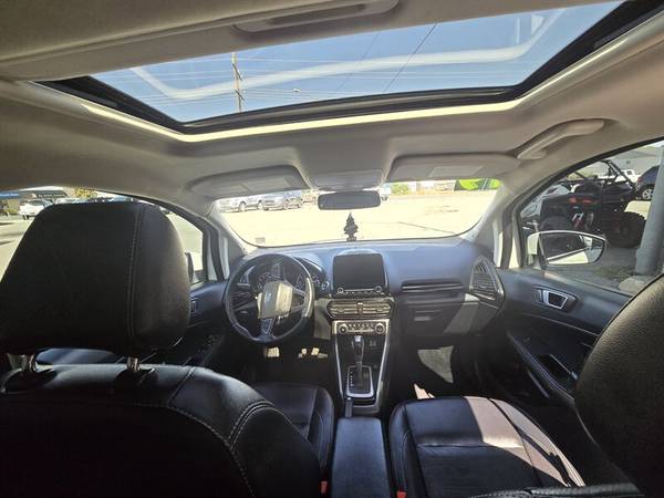 2019 Ford EcoSport Titanium AWD SUV black leather interior with heated seats, heated steering wheel, sunroof, back up camera, navigation, Bluetooth and good fuel economy 2.0L I4 automatic with Only 65K Local Trade in with a clean Auto Check on file showing no accidents