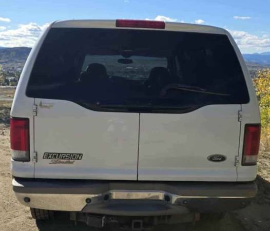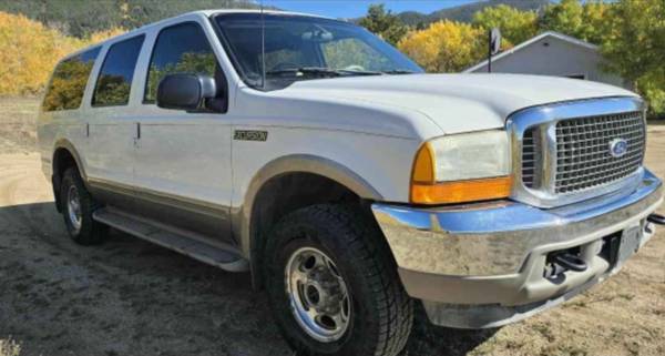 For sale is a 2001 Ford Excursion Limited 4WD, 6.8L V10 Engine. Has 4-speed automatic transmission. Has 3/4 ton suspension and heavy-duty axles. Mileage is 280,205. Tires have 10,000 miles on them. Recently installed new shocks. New ignition switch and key. Fresh oil and filter change. Seats up to 8 or 9 people and seats are leather. Features 3rd- row seat that can be folded down or removed. Maximum towing capacity of up to 10,000 lbs.with towing package. Excellent family vehicle. Great condition! Always dependable and Always garaged. This Beast Always got us home safe and sound no matter what the weather. Selling "as is". Thanks.