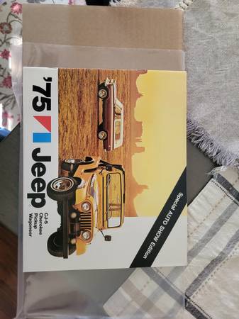 Also comes with Bikini Top, USB/BlueTooth BOSS Sound Bar, spare New Mechanical Fuel Pump, Original Owners Manual, Special Show Room Edition Sales Brochure for 1975 Jeep Models, and 1975 Original Shop Manual. Completely restored versions are going for $25,000 and up.