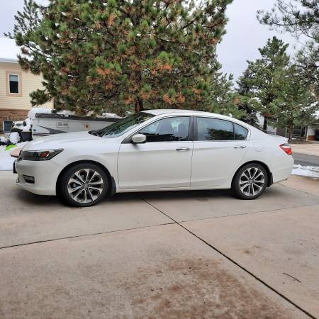 2014 Honda Accord Sport, white, very clean and in excellent condition. Backup camera, rear spoiler, drivers power seat, cloth seats, rubber floor mats in front from weather tech, cloth in back. New tires at 61,000 miles, new battery Jan 2025, new front brakes in 2024 and new rear brakes Oct 2025. Call or text 4zero6-42two-8733. I will not respond to e-mails. $13,500/OBO