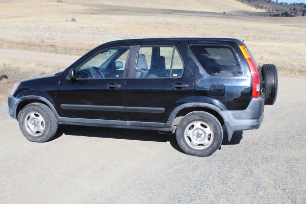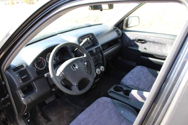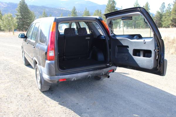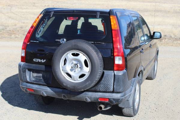 2003 Honda CR-V, 2.4L VTEC. Equipped with snow tires and ready for winter. It could use its O2 and knock sensors replaced and I have both sensors and would send them with the car. It does have a power steering 'whine', but that has never impeded function. Power steering works great and the previous leak has been fixed and a new pump has been put in. Interior is still in great condition. Exterior has the clear coat chiping a little on the rear driver's side, small rust spot shown in the pictures, and plastic exterior pieces are sun faded as shown in the photos as well. Been a great winter car. Still has the picnic table that it came with, perfect for winter adventures.