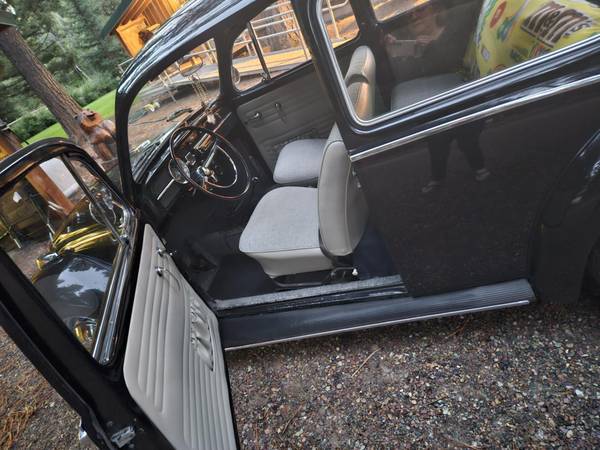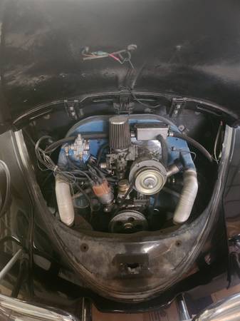 She has a rebuilt 1600 dual port engine with less than 15,000 miles on it. At the same time the clutch pressure plate, throw-out bearing, starter, alternator were replaced. It has been converted to 12v system, and an external oil filter added. The previous owner went thru everything, and it has been a great running and driving car. The interior has been completely redone, upholstery, head-liner, door panels, and floor pans. Tires are good.