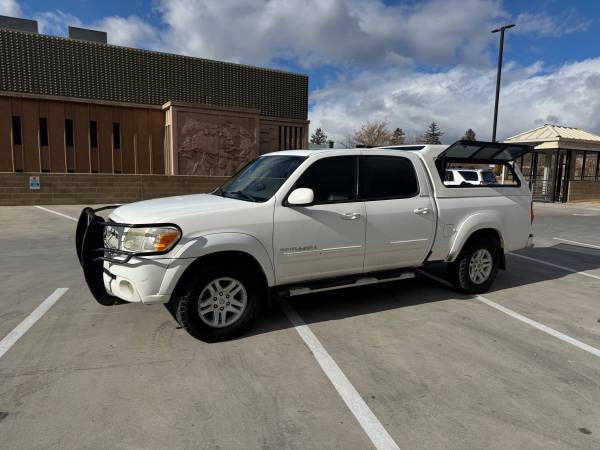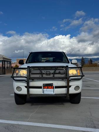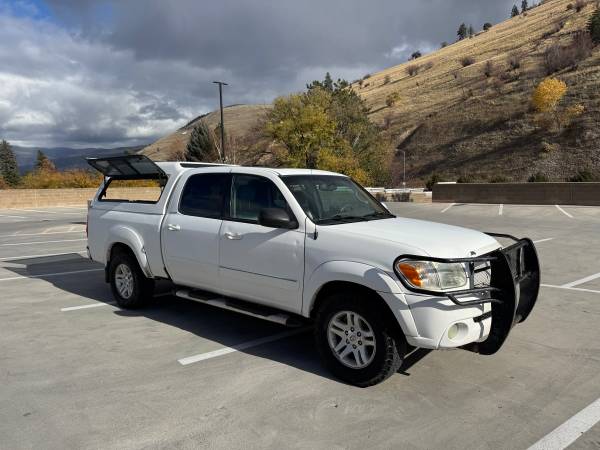 2006 tundra 4x4 limited double cab. I have taken great care of this tundra, and it runs and drives excellent. The Tundra has Bluetooth audio, are topper, backup camera, remote keyless entry, spray in bedliner, weathertech floor liners, and recently reupholstered front seat bottoms. I have replaced the timing belt / water pump twice. It got a new Toyota dealership installed transmission at around ~90k miles. The four flaws that I know of are 1. The CD player has never worked. 2. The windshield is cracked. 3. During covid I hit a deer, it was taking forever to find a replacement tundra door in white. So we settled on a Sequoia door, some of the trim and the side view mirror don't match exactly. The door fits nicely though. 4. There are some dents, a little bit of surface rust, and the paint in the photos probably looks better than it does in real life. Let me know what questions you may have, cash or cashiers check only.