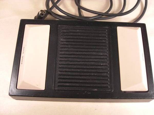 A Panasonic "Office Appliance", Model RR-830; very good condition: recording head was just demagnetized and cleaned; desktop model comes complete with two position foot pedal/controller (Model RP-2692); has volume, tone, back space and adjustable speed controls; also features Variable Speech Control level; for dictation, recording meetings, memoirs, ideas, etc., then transcribing them--has built in microphone; made in Japan