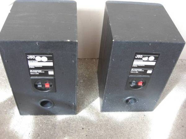 JBL J50 bookshelf speakers $25/pair For repair or parts: they sound scratchy; made in USA; measure approx. 10 3/4” high x 7” deep x 6” wide; easy connect terminals; sequential serial numbers;...