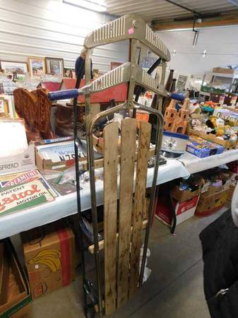 Furniture includes – Leather sofas, love seats & chairs, library table, storage cabinet, antique display case and buffets, ice cream chairs, 4 twin bed and mattress sets, dressers with mirror, bookshelves, floor and table lamps, roll top desk, snowshoes, old skis, old sled, fabric.