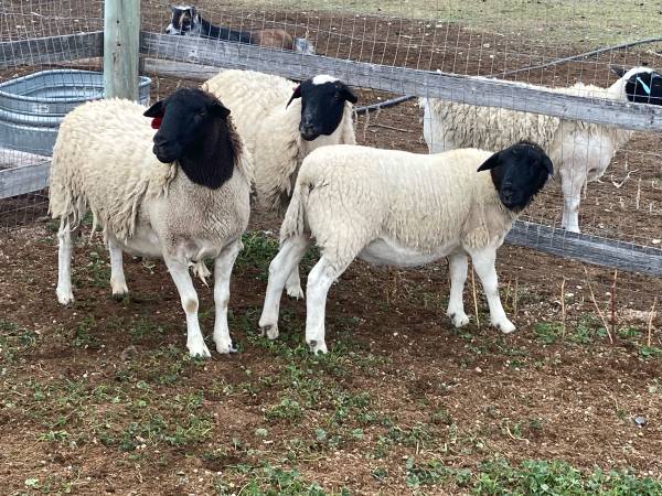 Dorper wethers and ewe lambs for sale. Good for meat, they shed their wool, so no shearing.