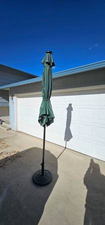 9 ft. Outdoor Tiltable Green Umbrella and Umbrella Base Only used 1 summer in good condition. Must purchase both together Cash only