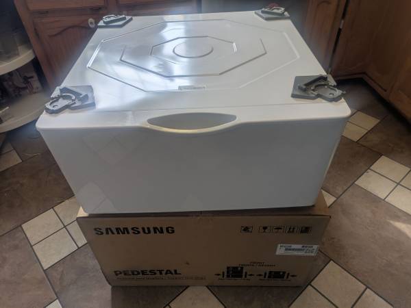 Two white washer and dryer pedestals made for Samsung. New, never used. Bought them a while ago and just got around to installing them, only to find that all together it's 1/2" too tall for my...