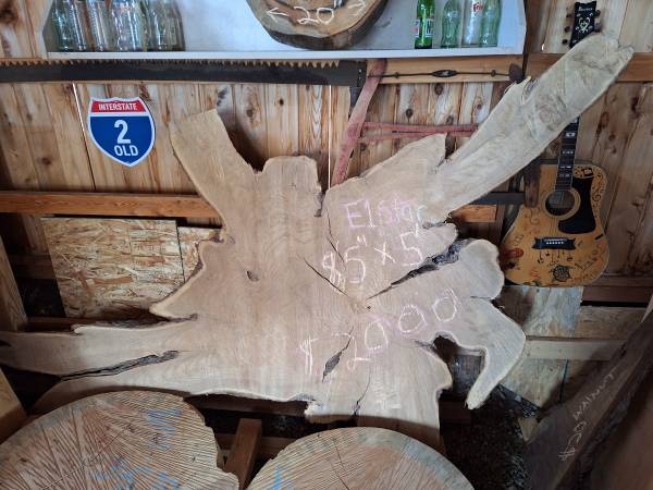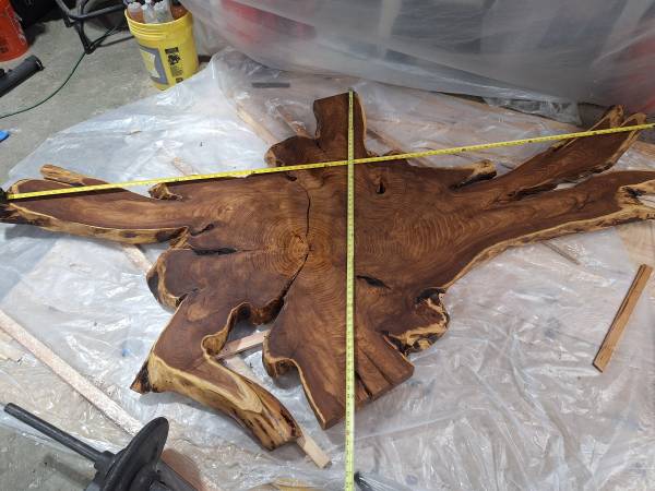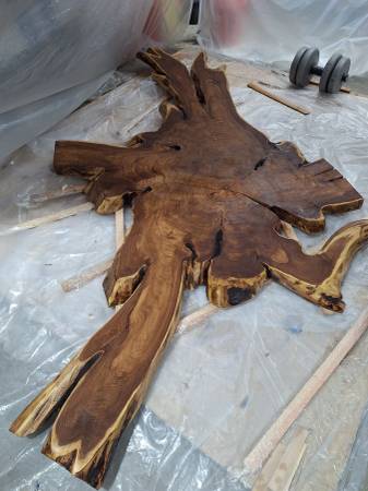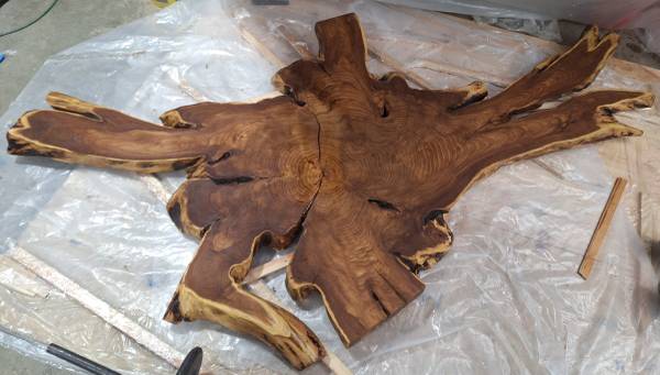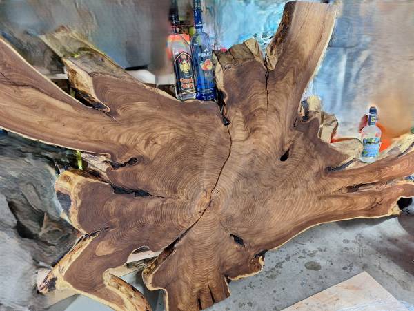 Elm Starfish Slab for Bed Headboard, Wall Art or Hang on Wall behind Bar and mount whiskey holders on it. 9' long x 5' wide x 3" thick = $3,800.00 Treated with a light coat of epoxy. The two raw...