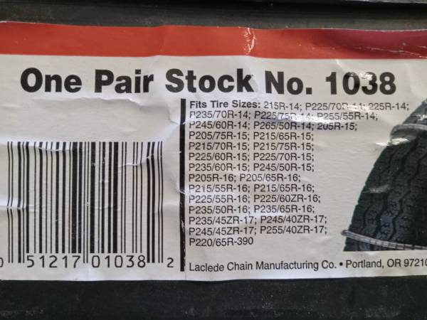 Laclede Cable Type Tire Chains - practically new. See pictures for size and fit - (fits small tire cars) Paul cell: (4 oh 6) - 2o2 - sixty-three 60.