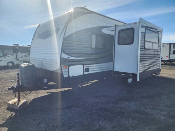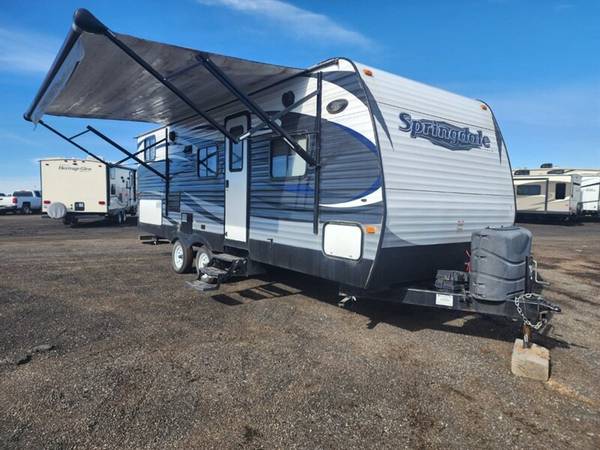 Super Nice 2016 Keystone Springdale 240 pull trailer - Half ton towable One slide out with large kitchenette, walk around master bed, rear oversized bunks, Outdoor kitchen, outdoor shower, power awning, enclosed underbelly.