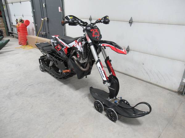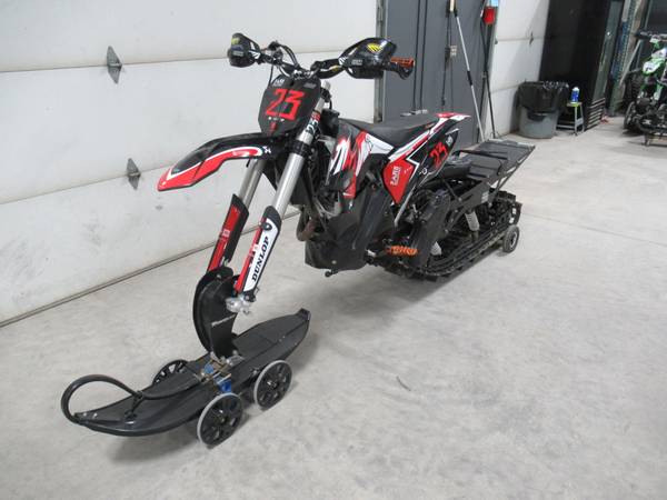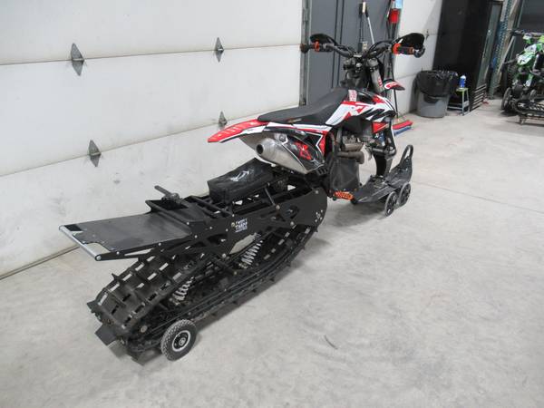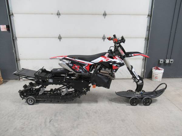 For Sale: 2014 KTM 350 SX-F Timber Sled. This machine is in excellent condition. It has a 349.7cc, fuel injected, water cooled, single cylinder, 4 stroke engine and a 5 speed manual transmission. The 120″ Timber Sled track is in excellent condition with 85% of the tread remaining.