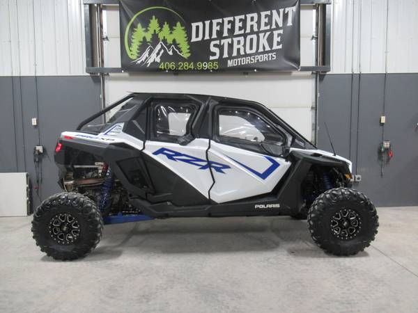 For Sale: 2020 Polaris Rzr Pro XP4 Turbo Ultimate Dynamix. This machine is in excellent condition but the windshield does have a crack near the lower corner not in field of view, it has 2,489 miles (172 hours). It has a 925cc, fuel injected, turbocharged, 181hp, twin cylinder engine. The transmission is a automatic CVT with High/Low/Neutral/Reverse/Park gears with selectable 2x4/4x4 modes. It has power steering and independent suspension. The 32x10-14 Tusk tires have about 75% tread left!