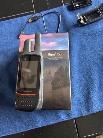 Used Rino 750 2-Way GPS Radio Works perfectly fine. I don’t use it anymore. Plug-in charger USB charger Lithium ion battery AA battery pack. (Batteries not included) Call or text. 406-4six1-one695