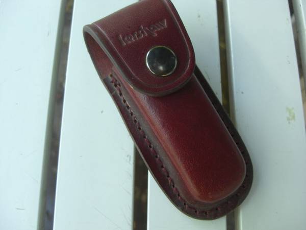 Kershaw leather knife case $30 Top grain leather; mint condition; snap closure; solidly riveted belt loop; approx. 4 ¼” long