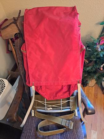 REI external frame backpack for sale for $35. Good condition. Adult size. 31" high x 14" wide. My father purchased this in the 1960s and used it a few times, but it is in good condition. It has a large interior compartment, a large zippered rear pocket, two zippered side pockets on each side, shoulder straps, and a hip belt. Local cash sale only. Call David at four oh six five nine four six two two five; no e-mails or texts please.