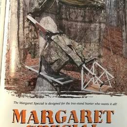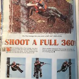 Great for gun or bow hunting. Includes Tree Lounge system with bow hunting adapter, steep angle pad, utility pack, tree nest (combination pillow, chill pad and padded arm rest in soft camo fabric and 1" foam rubber), gun holder, bow holder, camo rope, carrying straps and pads, sport saw, sniper shack, safety harness. Supports 1000 pounds of static weight. However, it is not recommended for hunters who weigh over 280#. It is easy to carry, put on a tree and climb with. Has safety and comfort once you are in the tree. When manufactured, new price was $475