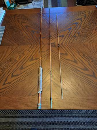 Vintage South Bend Model 359 8' 5" bamboo fly rod for sale for $50. Good condition. This was my father's fly rod. I don't know the manufacture date of the rod, but, from what I have read, it probably was made between the 1940s and 1960s. It appears that the tip is a replacement, but it looks like it is of the same approximate vintage as the rest of the rod, and it is in good condition. No e-mails or texts; please call David at four oh six five nine four six two two five.