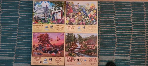 Puzzles come from a smoke free and dog friendly home. They have all the pieces. If any are missing pieces, they would be listed below. I do a lot of puzzles so check back often. Sold ones will be removed from listing.