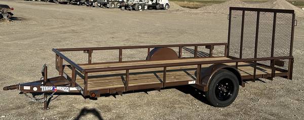 2025 Texas Bragg (new) -6.5x14 -pipe top railing -4' gate/ramp -3.5k axle, spare -very nice -ask about Sheffield financial or lease to own for standard residents