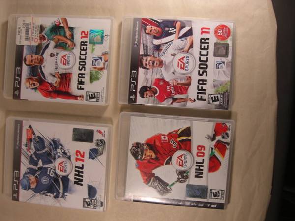 PS3 games $5 All are complete--case, game disc and manual Special price if you buy them all Call of Duty World at War $10 FIFA Soccer 11 $5 NHL 09 $8 NHL 12 $8 (Some games may be pictured but are...